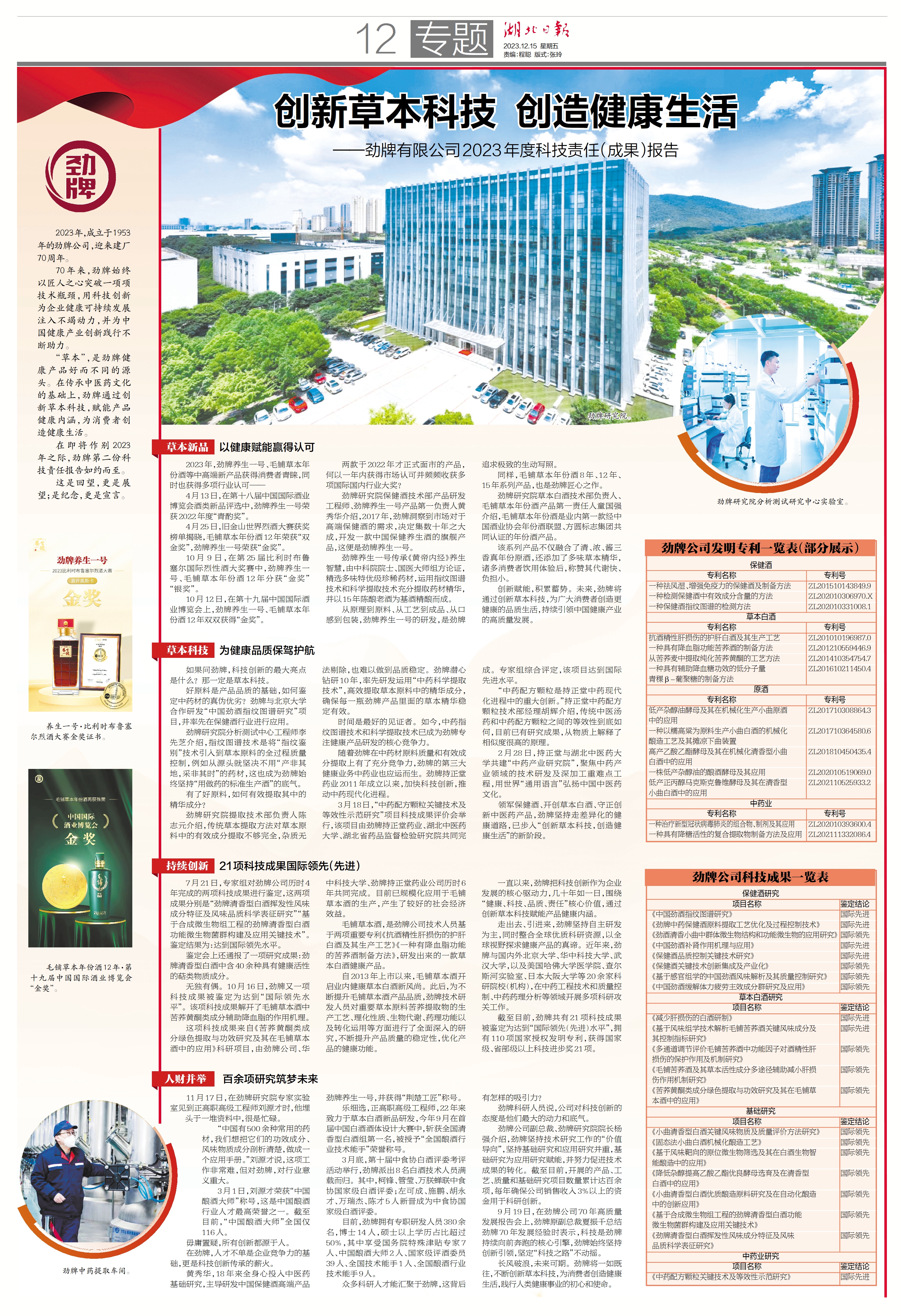 70 年来 , 劲牌始终以匠人之心突破一项项技术瓶颈 , 用科技创新为企业健康可持续发展注入不竭动力 , 并为中国健康产业创新践行不断助力。“草本”,是劲牌健康产品好而不同的源头。在传承中医药文化的基础上,劲牌通过创新草本科技,赋能产品健康内涵,为消费者创造健康生活。